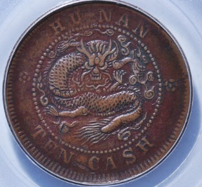 清吉林省造光绪元宝每元当制钱十箇铜圆一枚,原色巧克力包浆带底光,金盾PCGS MS61BN成交价: RMB 1150