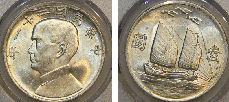 孙像银币版别成交价(¥)评级信息孙像二十一年背帆船三鸟壹圆176,000PCGS MS63孙像开国纪念币壹圆(下五星)65,000PCGS AU55孙像开国纪念币壹圆(五大 O……